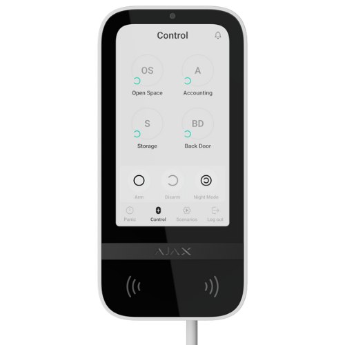 • Teclado cableado con pantalla IPS táctil y lector RFID de tarjetas/tags Ajax